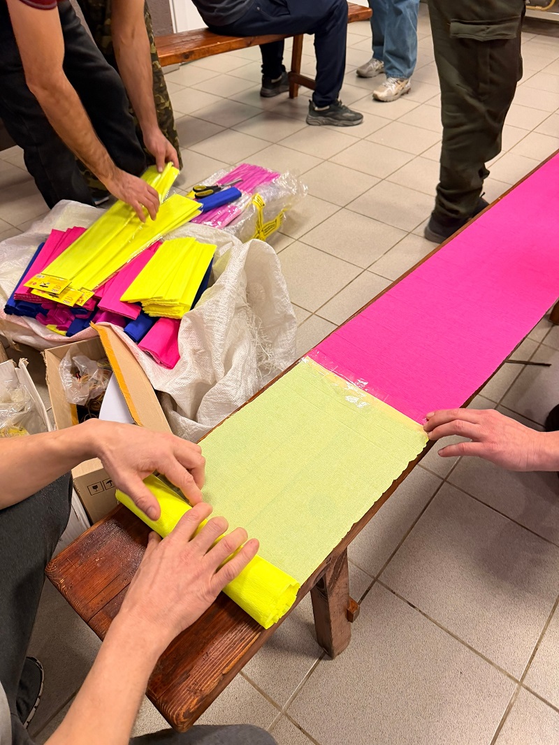 Сегодня наши парашютисты готовили важный инструмент — пристрелочную ленту из креповой бумаги. Её параметры выверены до сантиметра и грамма: